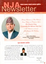 NJA continues arranging for exchange of visits of journalists delegations between Nepal and other friendly countries of the world. In liason to a number of measures adopted by the NJA in regard to promote the well-being of the journalists, it is under the auspices of the NJA that Nepalese journalists has an opportunities to visit several countries of the world as well as NJA has been able to welcome foreign journalists to its land. It has been one of the important objectives of the NJA to organize such exchange visits between the journalists all over the world.Publication of NJA Newsletter.